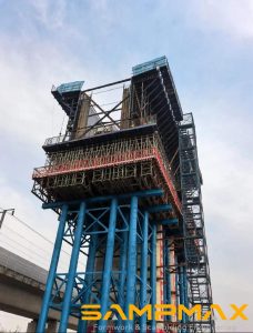 Walls exceeding 8–10 meters are often constructed in multiple stages. Cantilever or climbing formwork systems allow the formwork to move upward after each concrete pour. Combined with large panel formwork, the system allows large wall sections to be lifted and repositioned efficiently. This approach ensures safe working platforms, precise concrete placement, and reduced formwork dismantling time.