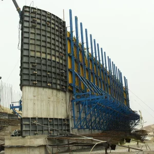 Benefits: Supports high walls and overhanging structures safely. Mounted on climbing brackets or working platforms, cantilever systems can be repositioned after each pour. Combined with large panel formwork, this staged construction method provides safe working platforms, efficient construction of tall structures, and precise control over concrete placement.