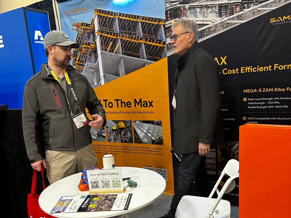 At CCE 2026, Sampmax presented its SP600 plastic formwork system and MEGA S ZAM steel formwork system, attracting strong interest from contractors involved in residential, commercial, and infrastructure projects.